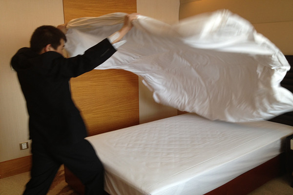 2013年4月11日14時(shí),第三屆“勞動(dòng)之星”職業(yè)技能競賽實(shí)踐操作由江泉城承辦的中式做房在江泉城客房部7樓正式啟動(dòng)。本次比賽共計(jì)20名參賽選手,集團(tuán)公司對比賽全程進(jìn)行了現(xiàn)場監(jiān)督。繼今日的比賽項(xiàng)目之后其他工種的比賽也將在近期陸續(xù)展開。