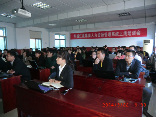2014年3月22日上午9:00,華盛江泉集團(tuán)人力資源管理系統(tǒng)薪酬管理模塊培訓(xùn)會在人社中心三樓舉行,參加培訓(xùn)會的有集團(tuán)薪資專員、單位人事專員、用友HR項(xiàng)目組成員、江泉HR項(xiàng)目組成員共70余人。江泉方項(xiàng)目組代表申路平主持了本次培訓(xùn)。