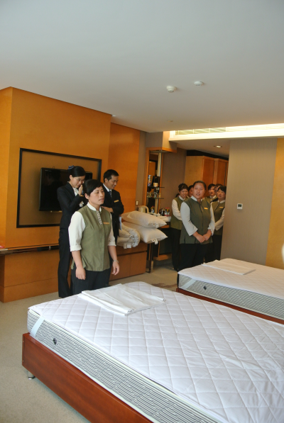 2014年7月17日14:00,由華盛江泉城酒店承辦的華盛江泉集團第四屆“勞動之星”職業技能競賽中式做房項目的實操比賽在酒店主樓803房間進行。參加本次比賽的選手共有43人,經理論考核,成績領先的20名員工進入了實操決賽。